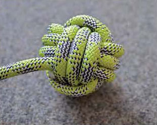 拳頭是一個大的繩結球,經典的結和一個偉大的方式重新利用你的舊繩子。進去一些攀爬區域不允許使用螺栓和金屬保護(螺母、凸輪等)。使用了吊索和猴拳頭取而代之的是結確保巖石得到保護,如果放置得當,可提供很好的保護。