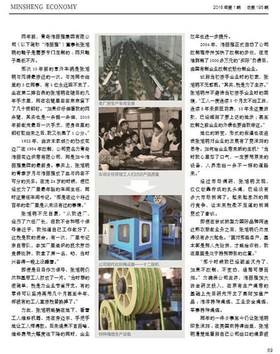 2016年3月,人民日報《民生周刊》增設(shè)了“商界女性”專欄。經(jīng)過中國女企業(yè)家協(xié)會推薦,海麗雅集團(tuán)董事長張旭明成為該專欄首位中國女企業(yè)家。期刊在全國“兩會”期間向公眾呈現(xiàn)百年企業(yè)的傳奇發(fā)展歷程。