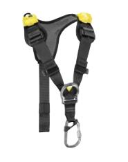胸式安全帶與坐式安全帶組合在一起成為防墜落安全帶。泡棉肩帶肩距較寬,可防止頸部擦傷。如果腰帶承重,重量會被分散到肩帶上。肩帶上帶有一個可鉤掛止墜挽索連接鎖扣的掛點,方便取用鎖扣。消防救援裝備整體解決方案。